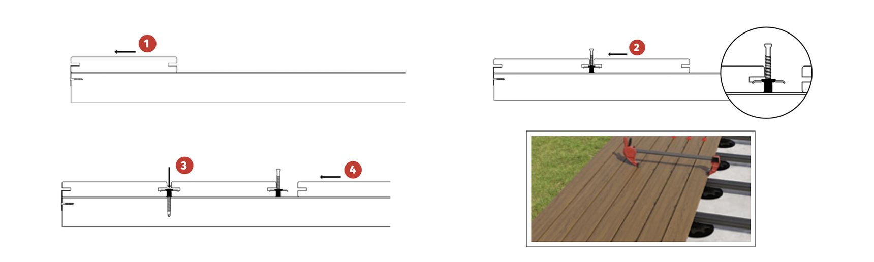 - Verwenden Sie den Clip 8-25 für Hartholzterrassen.